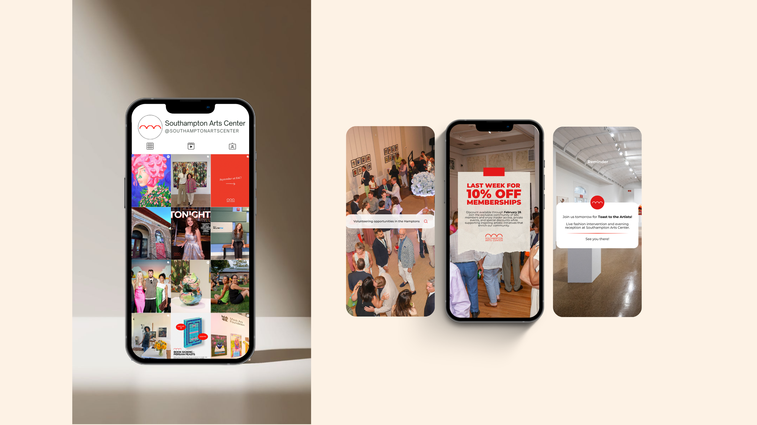 We create visually consistent email campaigns that share exhibition news, upcoming events, and institutional updates with Southampton Arts Center’s audience, helping maintain engagement and excitement throughout the year.